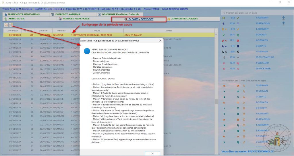Logiciel pour WINDOWS et MAC (via Paralles Desktop ou VirtualBox) ASTRO-ELIXIRS est un logiciel pour le calcul de votre carte émotionnelle à partir de votre date naissance et en liaison avec les Fleurs de Bach, possibilité de générer une Étude Complète et de nombreuses fonctionnalités. C’est un outil de coaching, de connaissance de soi et de développement personnel.