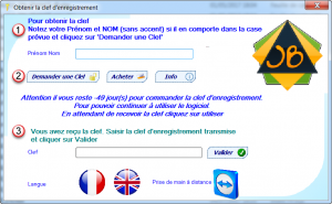 Vous avez téléchargé l’installation du logiciel, la fenêtre Obtenir une clef d’enregistrement apparait